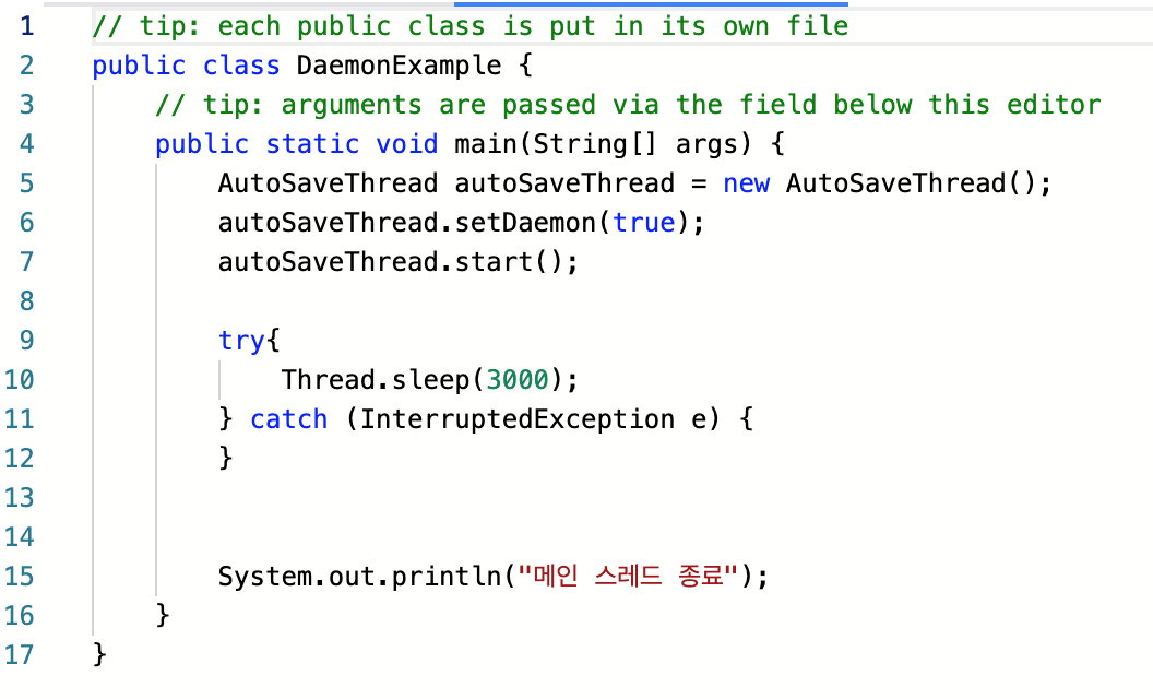 daemonThread.setDaemon(true); // 데몬 스레드로 설정