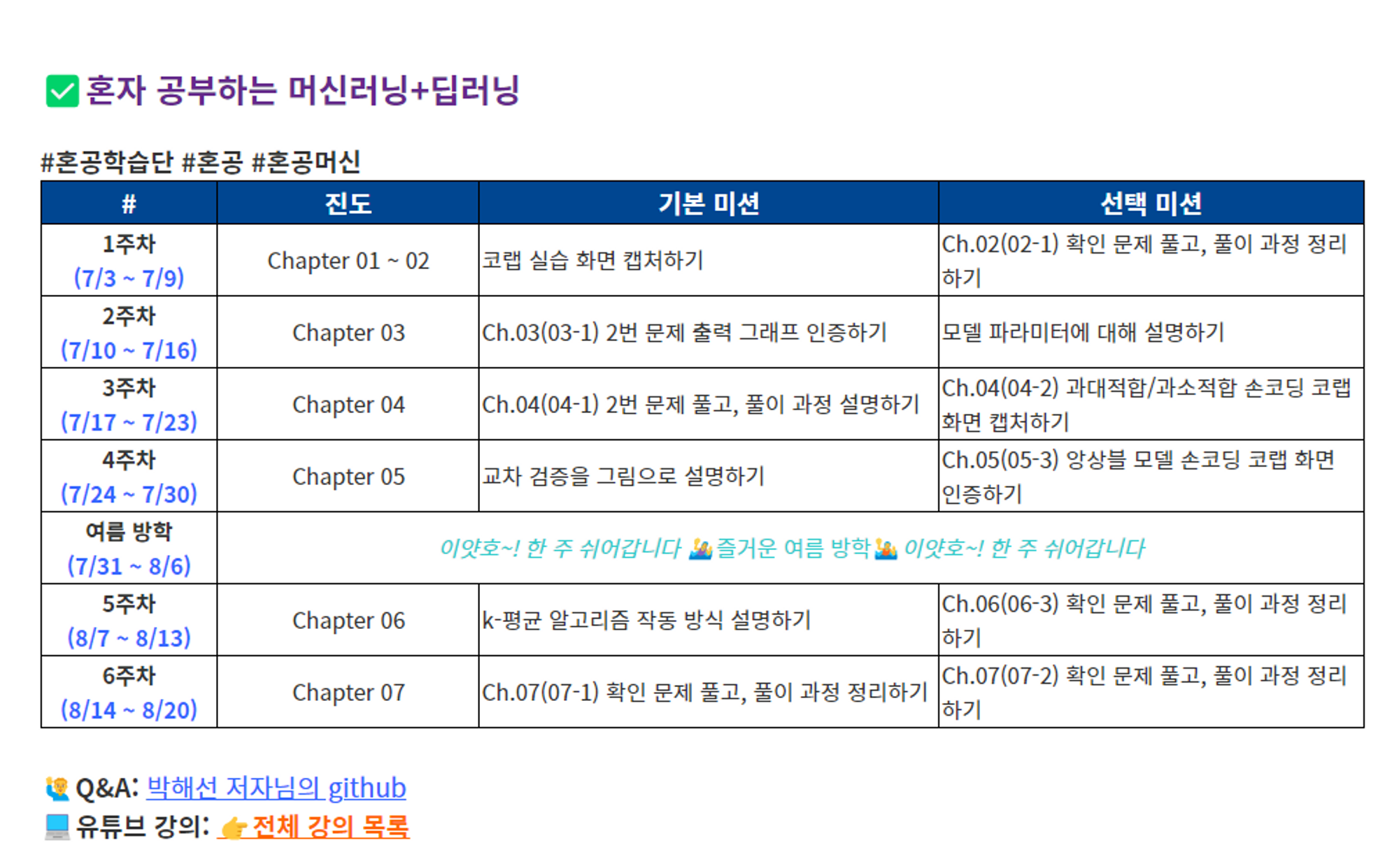 | 1주차 | chapter 01 ~ 02 | ch.02(02-1) 확인 문제 풀고, 풀이과정 정리하기 |